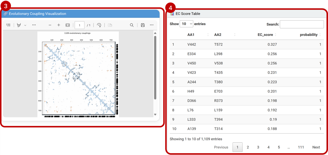[Evolutionary Coupling Visualization] highlights co-evolving residues with structural/functional relevance.